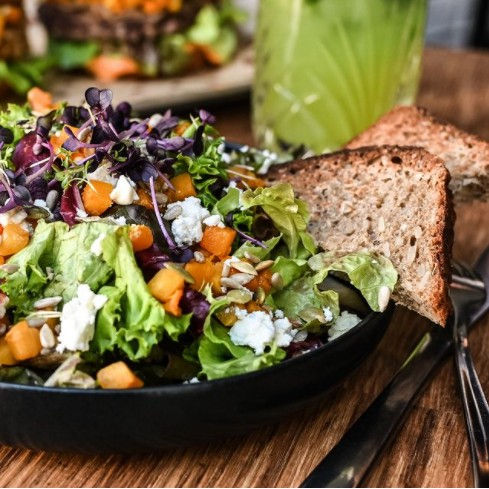 𝗔𝗡𝗧𝗛𝗢𝗡𝗬 𝗣𝗨𝗠𝗣𝗞𝗜𝗡𝗦: knackige Blattsalate • Kürbiswürfel • Fetakäse • Kressemix • Kernemischung & getoastetes Körnerbrot • Kürbiskerndressing