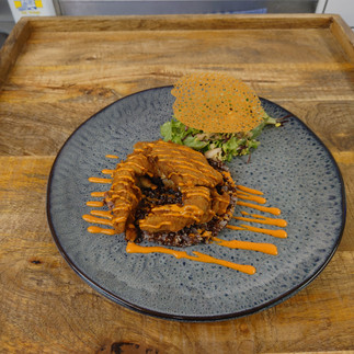 Roter Quinoa mit gebackener Mangrovenkrabbe