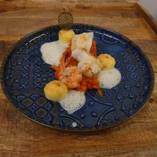 Seeteufel und Riesengarnele gebraten, med. Paprika Fenchel Sugo